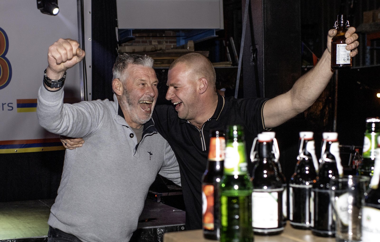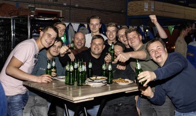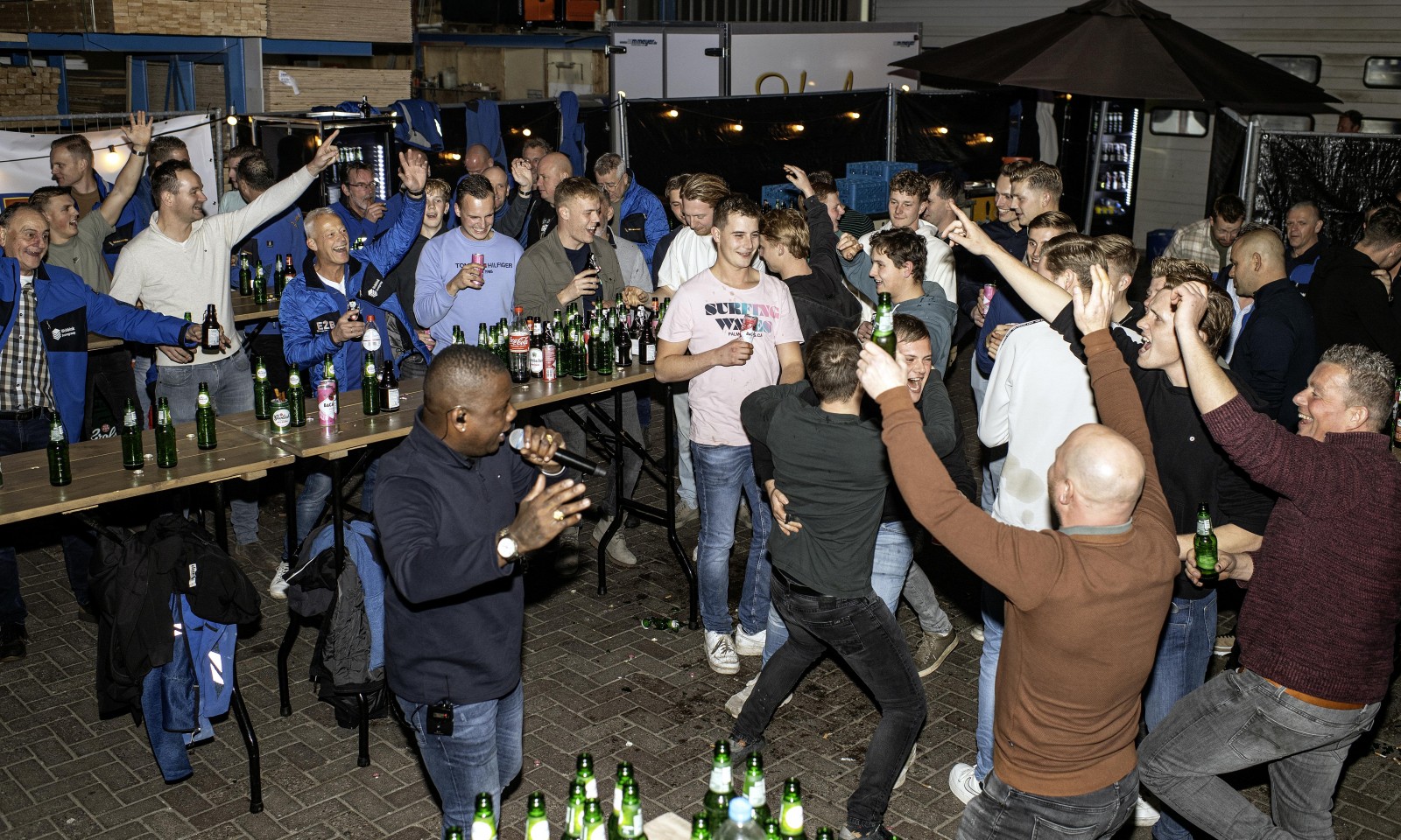 Alle EZB’ers waren uitgenodigd, dus iedereen die namens bouwbedrijven Warmes, Webbink en Maneschijn voor de EZB werkzaam is. Zo zien ze elkaar eens allemaal tegelijk. Op het programma dit jaar: muziek, cabaret en eten. Locatie was dit keer de werkplaats van Warmes.