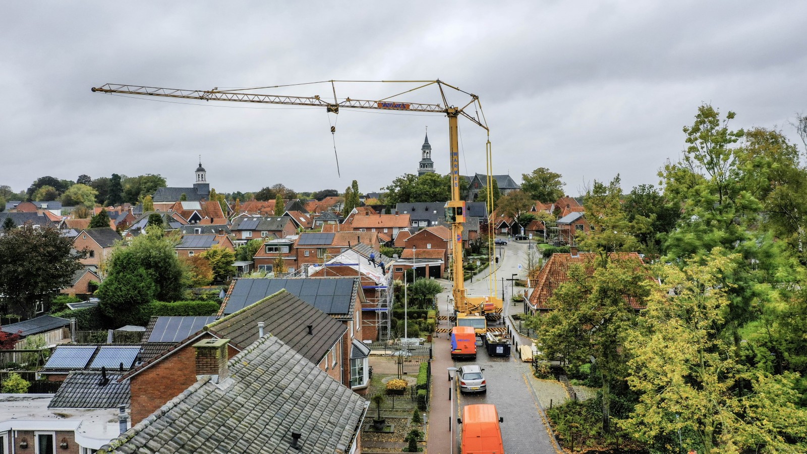 Binnen twee weken een gerenoveerde kap dus. Ondertussen wordt op donderdag alweer gestart met de bouw van de steigers voor de volgende woning.